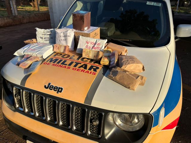 Uma grande quantidade em dinheiro foi apreendida na tarde desta quinta-feira, 27, pela Polícia Militar Rodoviária na MG 255, em Frutal.